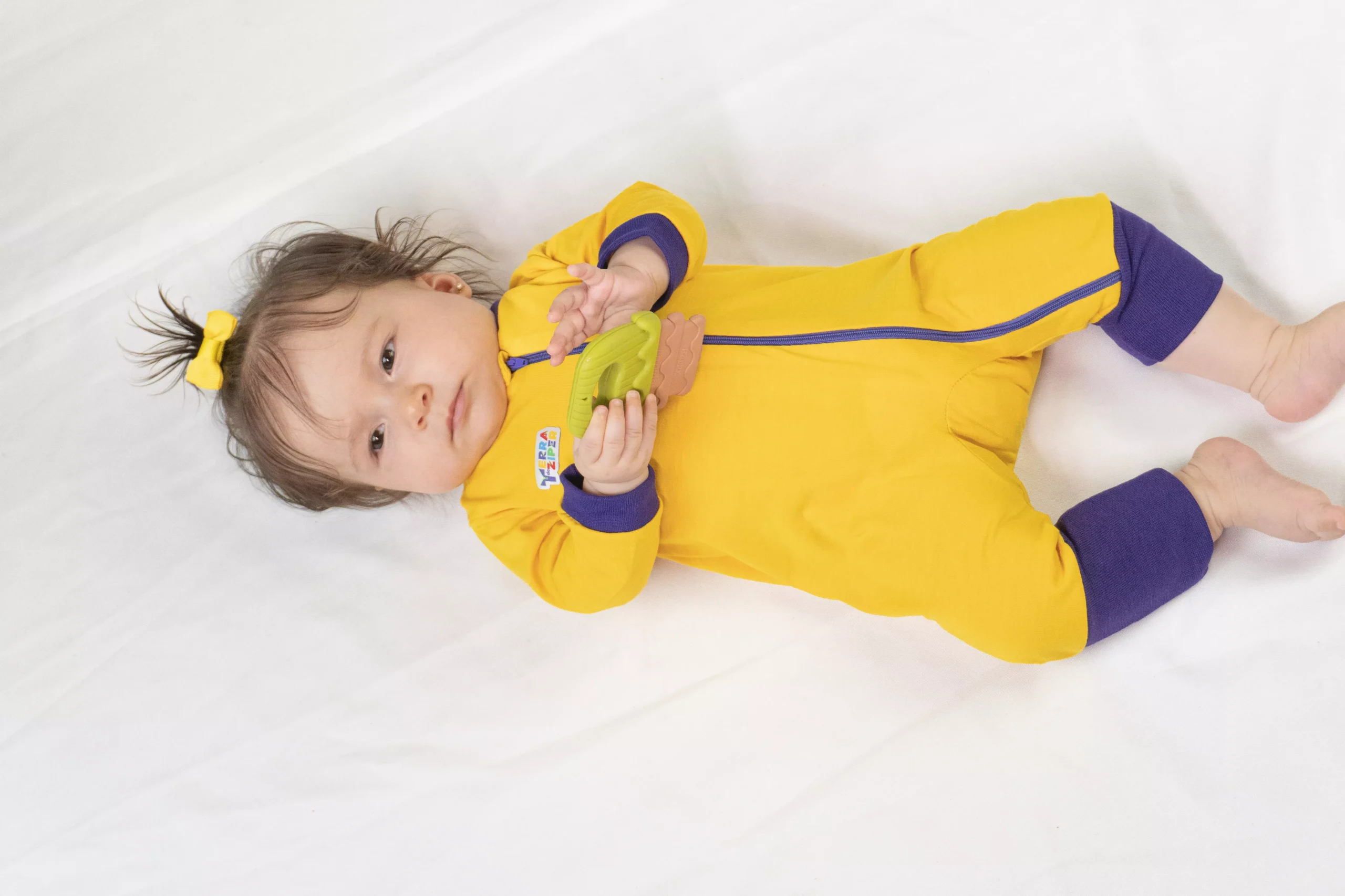 Seja o primeiro a avaliar “Macacão Suedine Amarelo Com Gola Punho E Zíper Roxo”