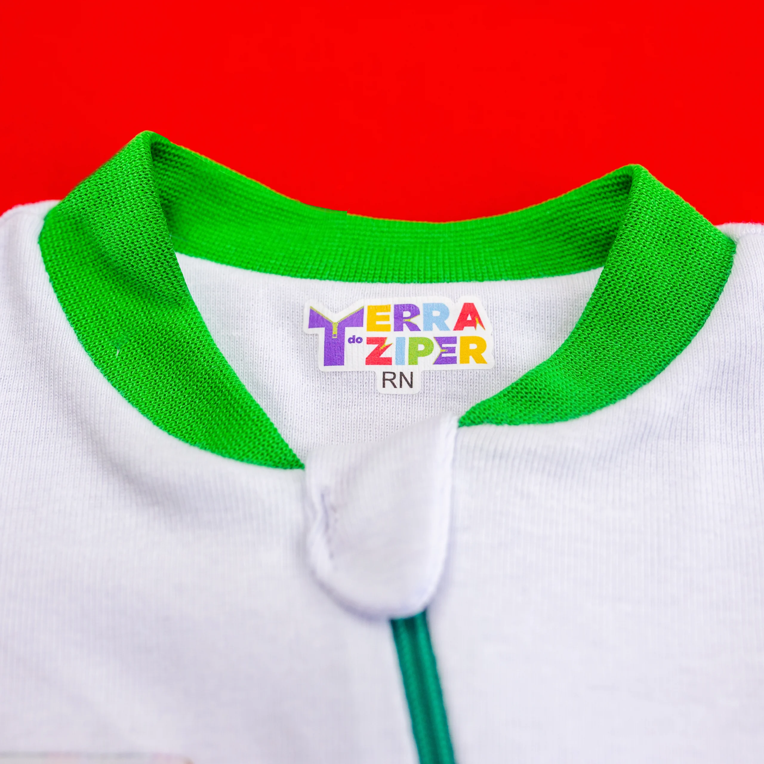 Macacão Suedine Branco Com Gola Punho E Zíper Verde Claro